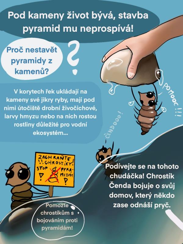 Některá stanoviště nabízí možnost vylovit si za pomoci cedníku bentos a poznat, co jej tvoří, jiné ukazuje za pomoci dvou kmenů s vydlabanými koryty způsob, jak funguje regulovaný, a jak meandrovitý tok řeky. A přitom všem lze posbírat to, co po sobě stále zanechávají lidé - pytle na odpadky jsou k dispozici volně. Přijďte si jejich nápady vyzkoušet - věříme, že vás budou bavit!