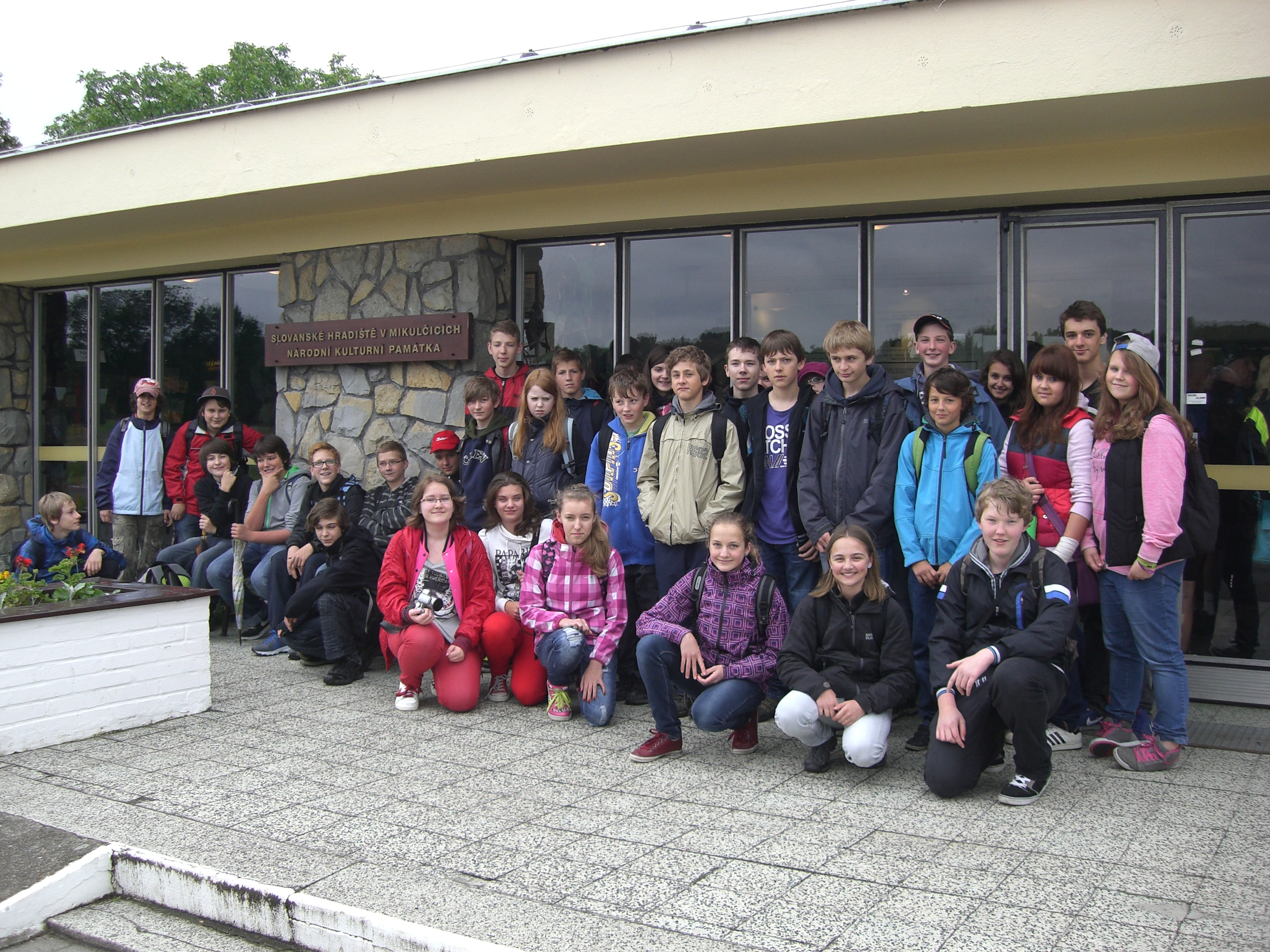 Na unikátním raně středověkém velkomoravském hradišti v Mikulčicích měli sedmáci ve starší expozici možnost prohlédnout si vystavené nálezy ze zdejší oblasti, např. zbraně, předměty denní potřeby jako keramiku, kovářské výrobky, nákončí, dřevěné kuchyňské předměty či dva monoxyly - čluny vytesané z jednoho kmene dubu. V novější expozici na ně po moderní audiovizuální prezentaci, spojující mluvené slovo, hudbu a filmovou projekci, čekala prohlídka negativu základů „druhého“ mikulčického velkomoravského kostela, 13 otevřených kostrových hrobů, trojrozměrné makety kostelů a paláce či šperky a kopie rukopisných textů psaných hlaholicí. Poté absolvovali pěší okruh hradištěm a shlédli kopie základů kostelů a paláce.