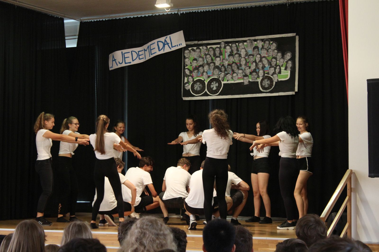 Deváťáci si pro své mladší spolužáky (a samozřejmě také pro učitele) připravili více než hodinový program. Jeho součástí byla videoprojekce jednotlivých tříd a spousta pěveckých, hudebních, tanečních i sportovních vystoupení. Všichni se velmi dobře bavili - prostě bylo se opět na co koukat...