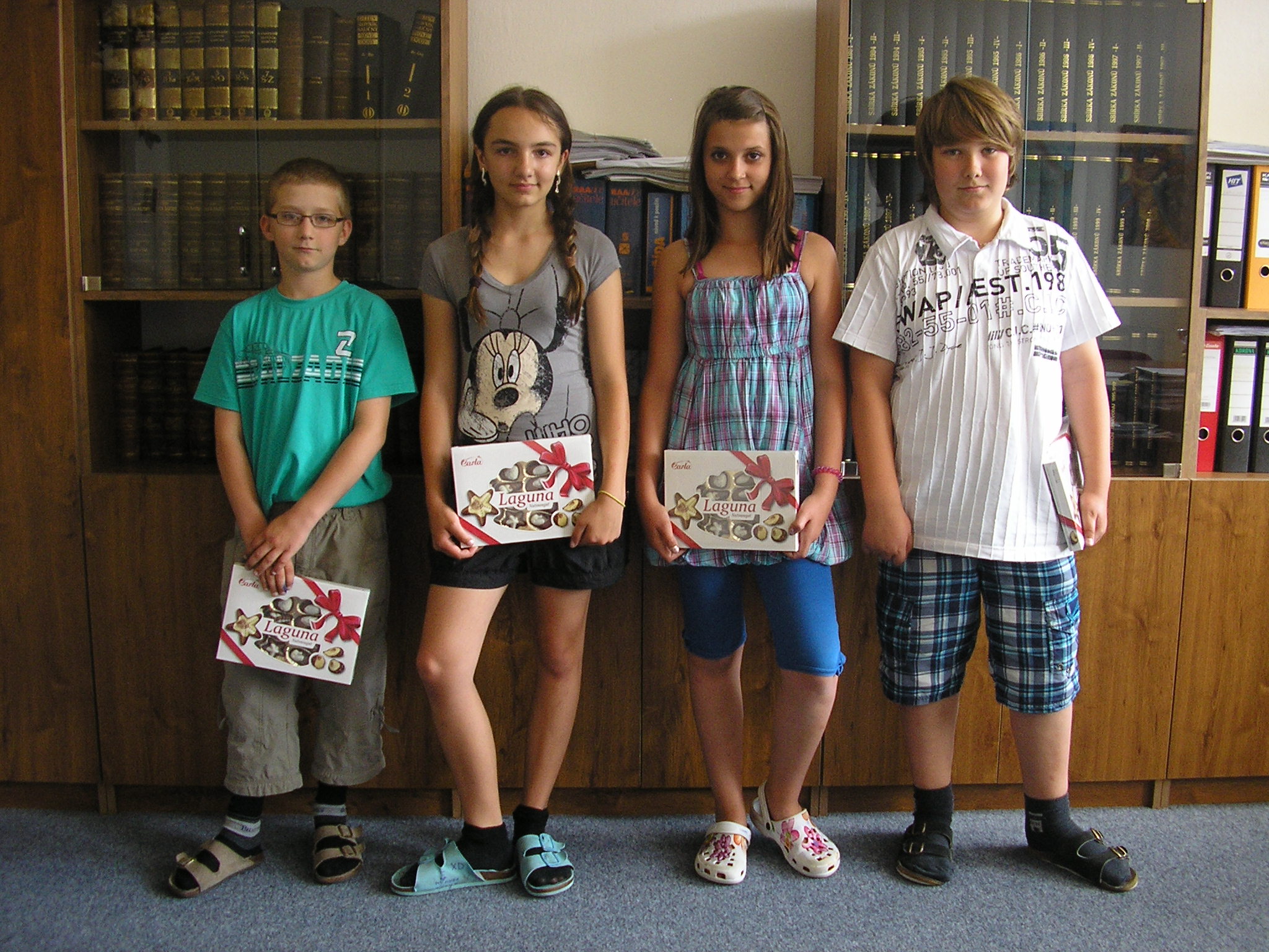 Naši školu reprezentovali Tereza Barošová, Kateřina Besedová, Ondřej Malý a Zbyněk Helis. A nutno říci, že si vedli více než skvěle, protože v konkurenci dalších 4 týmů z celého Zlínského kraje nenašli přemožitele a stali se tak celkovými vítězi v mladší kategorii! Navíc celkovým vítězem v jednotlivcích se stal také náš žák - Ondřej Malý. Tereza Barošová skončila na stříbrném stupínku a Zbyněk Helis na dělené druhé příčce. Družstvo vedené pí vych. Mičkalovou získalo právo účasti v celostátním finále, které se uskuteční ve dnech 21. - 23. 6. 2011 v jihočeské Třeboni. Poděkování za přípravu žáků na okresní i krajské kolo patří p. Radimu Česnekovi.