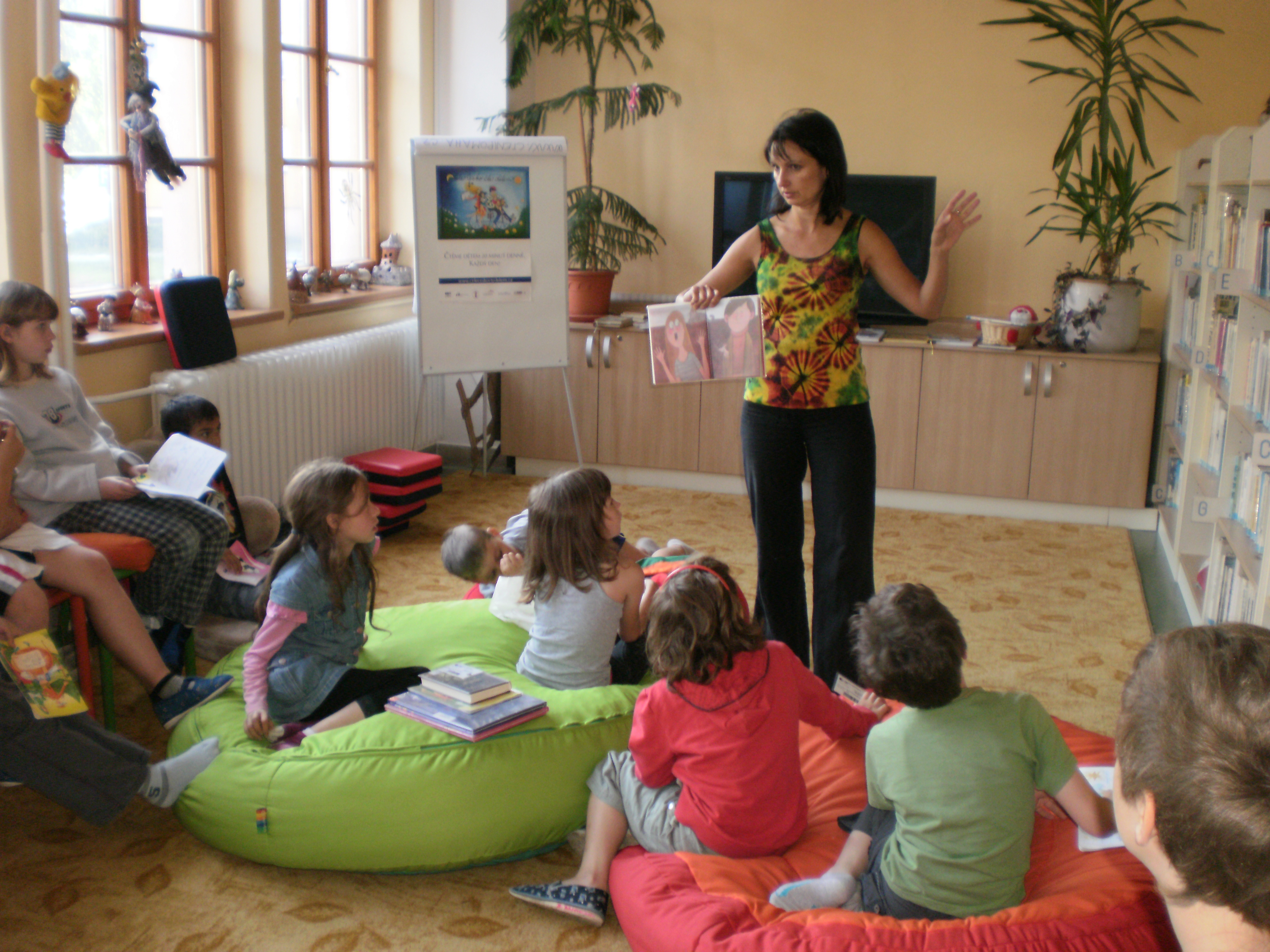 A tak tentokrát povídaly děti o svých oblíbených knížkách, které v každém měsíci četly, který spisovatel či básník knížku napsal, co si o ní zapsaly, zapamatovaly a nakreslily. Kytičkami a dárečky jsme se s paní knihovnicí rozloučili.
