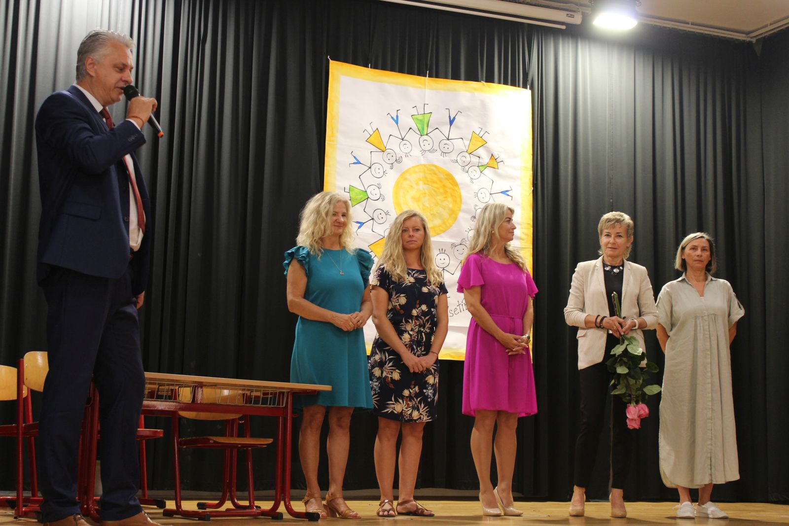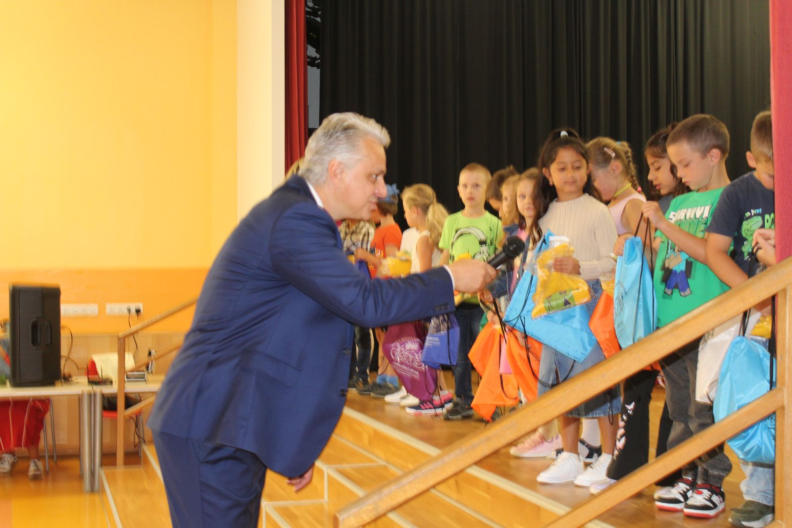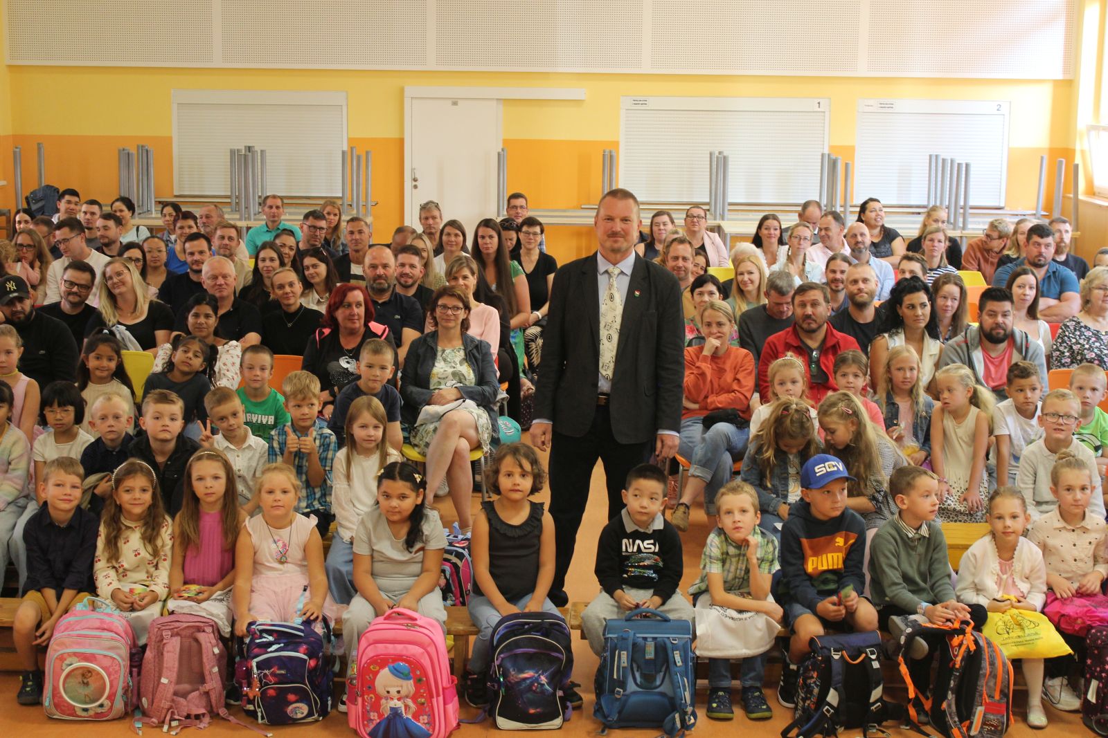 Jak už to bývá, nejvíce jsme se těšili na ty, kteří k nám zavítali úplně poprvé - na naše nové prvňáčky. Společně s místostostarostou města Petrem Kudlíkem jsme je osobně přivítali i s jejich rodiči, všechny pěkně pohromadě, ve školní jídelně. Prvňáčkům jsme popřáli, aby se jim ve škole líbilo, aby se v ní cítili příjemně a bezpečně, aby je bavilo učení, oblíbili si paní učitelku a brzy si našli nové kamarády.