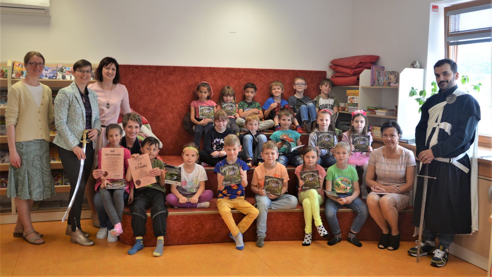Na konci května byly děti z prvních tříd pasovány na čtenáře. Aby mohli být přijati mezi Rytíře řádu čtenářského, museli všichni slavnostně složit slib ve jménu všech krásných knížek, pohádek, příběhů a básniček. V knihovně přivítala děti paní knihovnice Martina Křenková a představila dětem všechny hosty, kteří se pasování zúčastnili: ředitelka knihovny paní Ing. Daniela Divínová, starosta Vsetína pan Mgr. Ing. Jiří Růžička, místostarostka města Vsetína paní Mgr. Simona Hlaváčová, rytíř Martin, knihovnice paní Bc. Ludmila Holbíková a vedoucí knihovnických služeb paní MgA. Magda Goláňová.