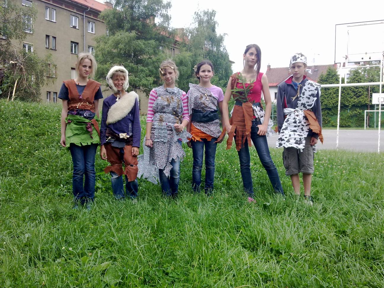 Docela jsme se u toho bavili. Museli jsme vyrobit oblečení pro dvojici pravěkých lovců. Materiálem byl krepový papír a kousky kůží. Další členové tlupy vyráběli zbraně ze dřeva, kamene a provázku, abychom mohli ulovit něco k snědku...