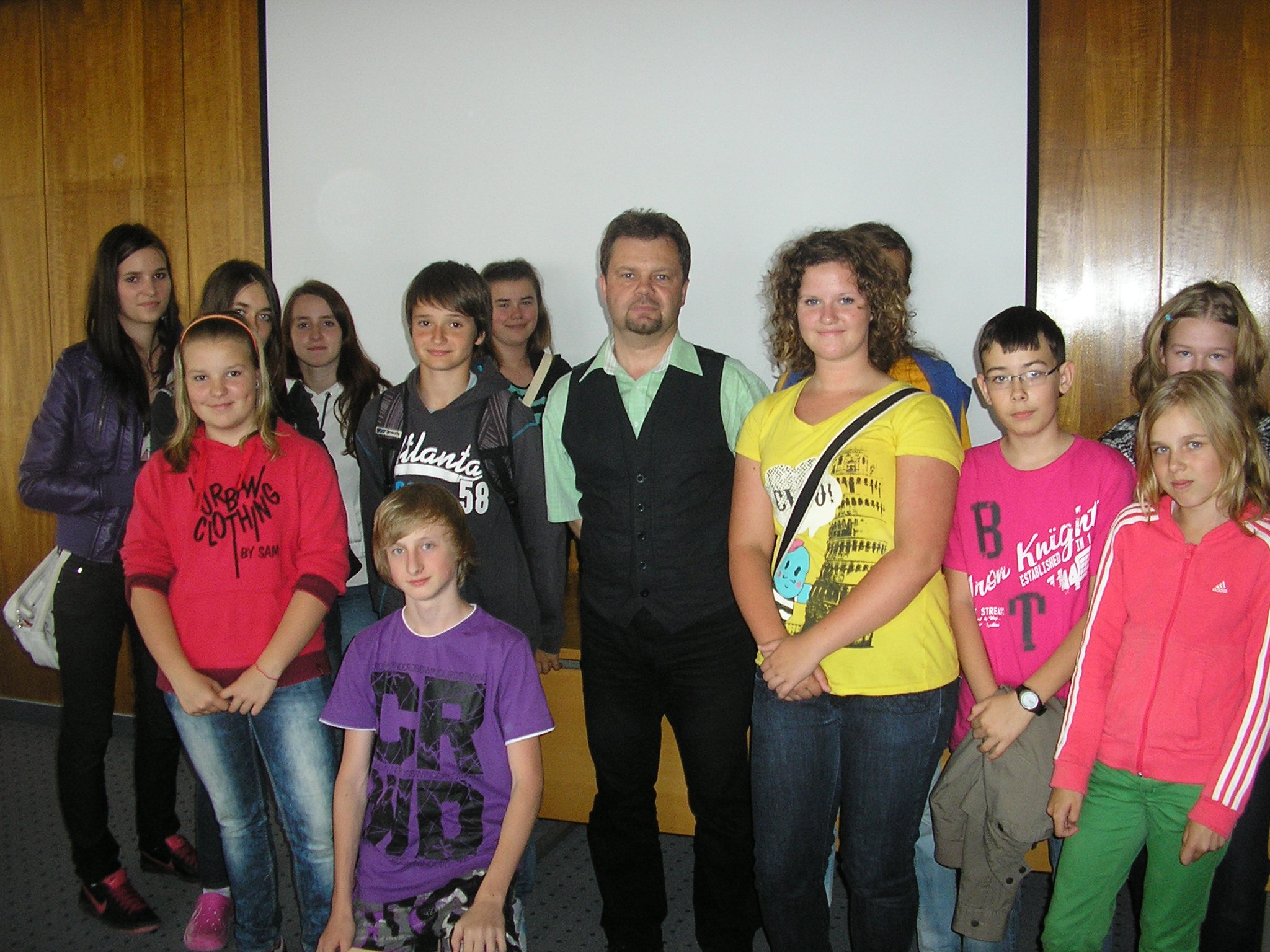 Nakonec jsme se setkali s II. místostarostou Mgr. Petrem Kořenkem. Dozvěděli jsme se, jak funguje městská rada a co mají za úkol zastupitelé města. Velmi podnětná byla i diskuze nad některými tématy a otázkami, které žáky zajímaly.