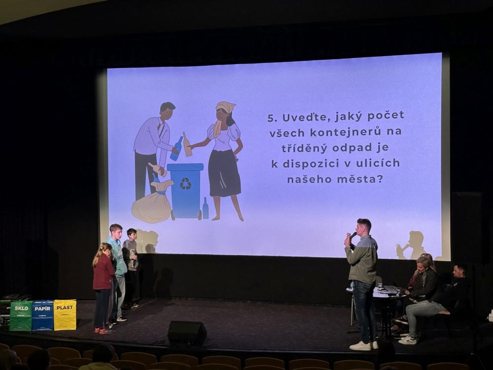 Žáci 6. - 9. ročníku naší školy se dne 7. 10. 2025 v kině Vatra zúčastnili akce „Tak trochu jiná talk show", která byla zaměřena na téma třídění odpadů ve Vsetíně. Celou besedu moderoval známý hlas rádia Evropa 2 Ondřej Urban, jenž vedl rozhovory o odpadovém hospodářství s místostarostou Vsetína Pavlem Bartoněm, trenérem mládežnického hokeje Lubošem Konečným a zpěvačkou Adélou Zouharovou. Ta na závěr programu potěšila publikum i svou autorskou písní.