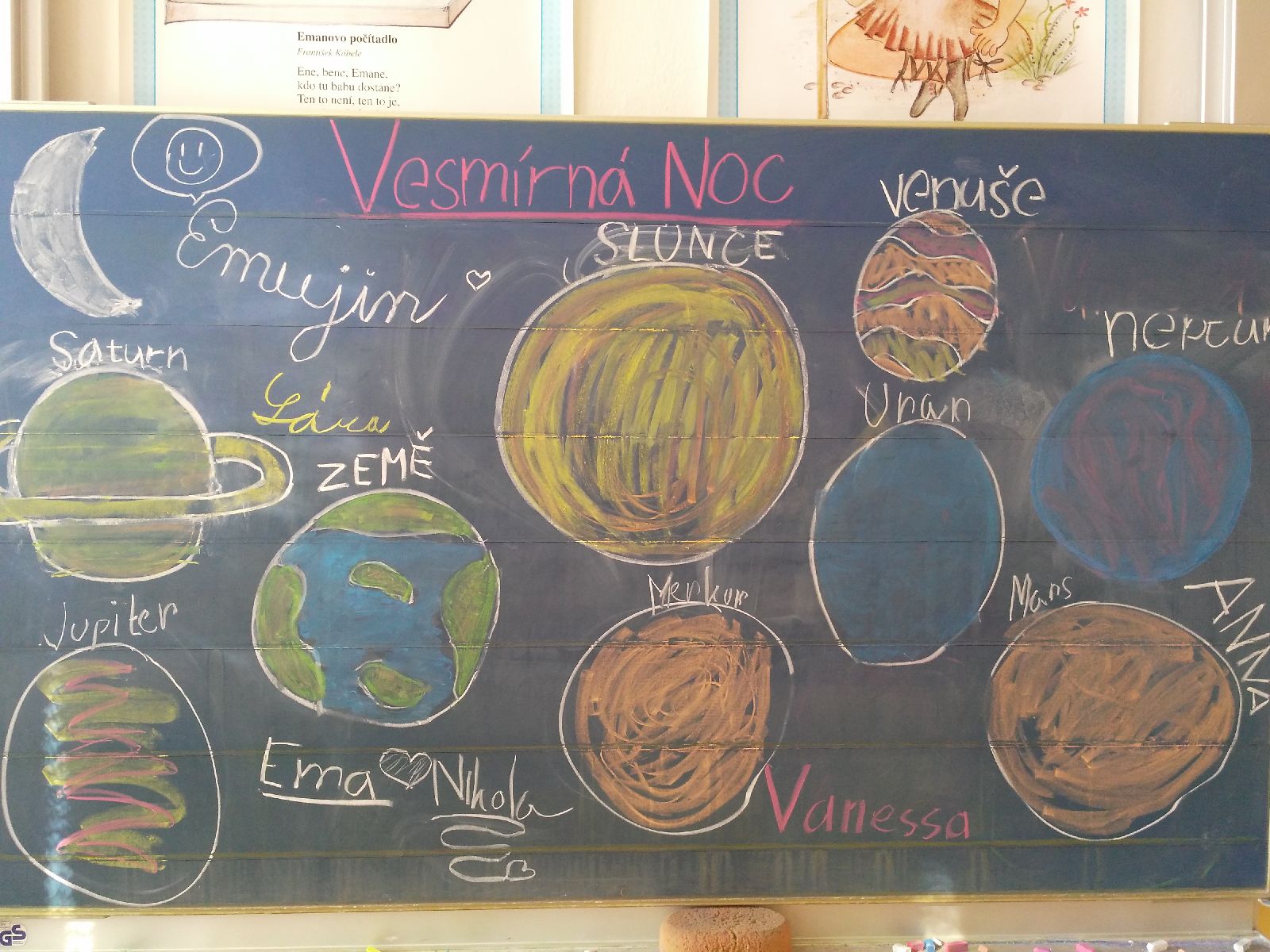 Na návštěvu jsme se pečlivě připravili četbou dobrodružné knihy Jurkův tajemný klíč k vesmíru od světoznamného vědce Stephena Hawkinga a jeho dcery Lucy. V noci jsme se pak zakuklili do spacáků a popřáli si sladké sny ve třídě 1.B.